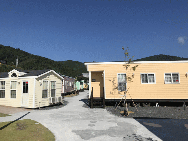 トレーラーハウスの改造と言っても、内部は完全にホテルか、あるいは簡易的な一戸建ての住宅のような作りになっていて、料金もかなり安めですから、大変リーズナブルに宿泊できます。(動画に、部屋の内部の様子を記録してあります)