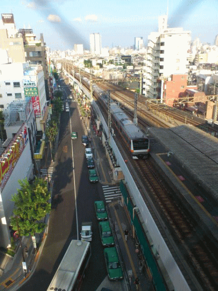 部屋の窓からは高円寺駅の屋根ばかりが見えます。鉄道が来ても、やはり鉄道の屋根ばかりが良く見えるという状態。
