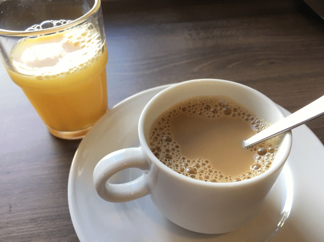 私は9時くらいに朝食をとったので、この時間になるとほとんど人がいません。ですので、食後のコーヒーも実にのんびりと飲むことができて、快適でした~~。