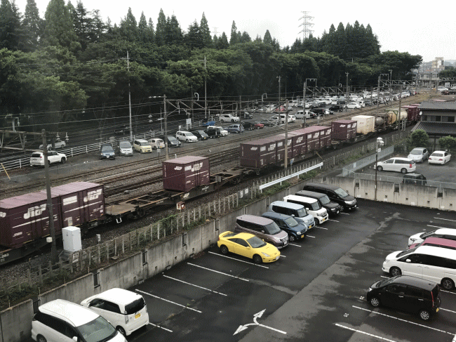 私がお願いした部屋からの、実際の鉄道の見える光景は、このようなものになります。特急ひたち号やときわ号が頻繁にやってきますし、常磐線の各駅停車も比較的本数は少なくない区間ですから、鉄道の眺めには事欠きません。(車両形式が少ないので、2時間見たら満足しますが・笑)