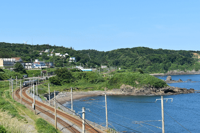 絶好のトレインビューを楽しんだホテルニューグリーン柏崎をチェックアウトした2018年6月17日(日)は、朝から雲ひとつない好天に恵まれました。