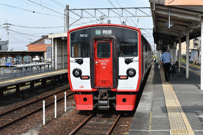 本日(2019年6月1日(日))は、本サイト「鉄宿!」管理人であるP氏とともに南阿蘇鉄道に乗車します。2016年の熊本地震の被害により豊肥本線肥後大津~阿蘇間と南阿蘇鉄道立野~中松間は不通となったままです。そのためバスを利用することとし、まずは肥後大津駅に向かいます。