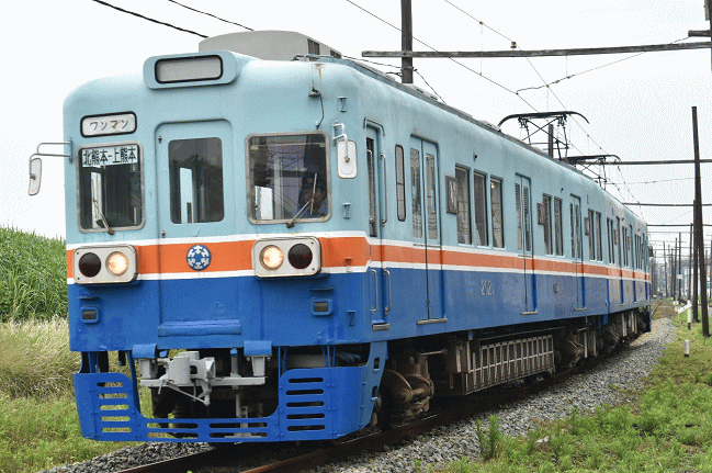 藤崎宮前~御代志間の「本線」は平日朝晩・土曜日朝を除いて30分毎の運行で、3本の編成が往復しています。本日はこの6231A+6238Aで3本すべての撮影が完了。ここでは午前中の藤崎宮前行が順光となりますが、この時は小雨が続いていました。(2019.6.2 12:05)