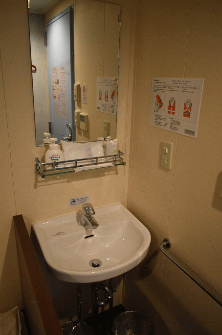 船内ということを忘れるほどに静かで揺れはなく(立てた鉛筆も倒れなさそう)、船酔いの心配は皆無です。本日は学生団体や旅行ツアーの団体客もいて賑わっていましたが、個室ということもあり静かで非常に快適な一晩でした。欲を言えば窓がない点は残念でしたが、夜などは周囲の風景はほぼ漆黒の闇(海)なので、窓があっても意味はないかも知れません。