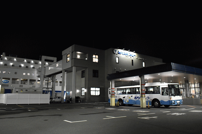 小倉駅から無料連絡バスに40分ほど乗車して新門司港ターミナルに到着します。北九州市門司区に所在していますが、最寄りと思われる門司駅からは山を越えて直線距離約6kmの場所に位置しており要注意です。また阪九フェリーの新門司港とは2㎞近く離れているのでこれまた注意が必要です。(2018.9.1 19:19)