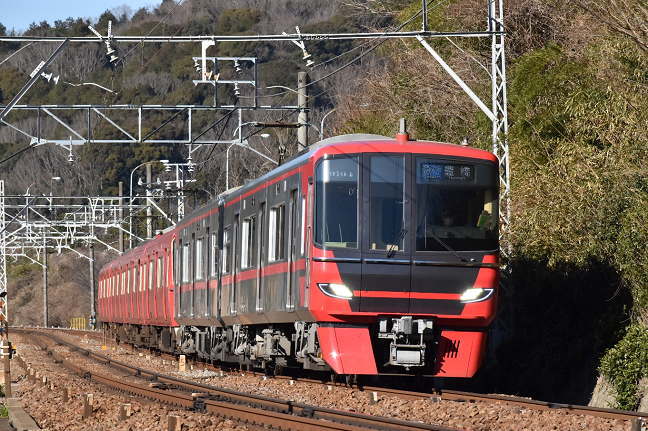 昨年(2020年)9月の甲種輸送に「立ち会った」9100系を先頭とする急行豊橋行です。今月から営業運転を開始した最新鋭車両です。前述のようにこの日は運用差し替えで1700系の通過は午後4時過ぎとなるそうで、影が落ちてくる可能性もあり根性もない私はここで撤収しました。(2021.1.31 14:34)