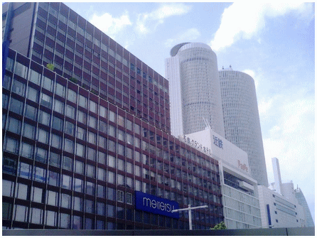 JRグループの旗艦店でもある、名古屋マリオネットアソシアホテルが後ろ側にそびえていて、なんだか自虐的な写真に見えますね・笑。(マリオットアソシアホテルの向こう側には、この写真では写っていませんが、同じJR東海が運営する名古屋JRゲートタワーホテルも存在します)