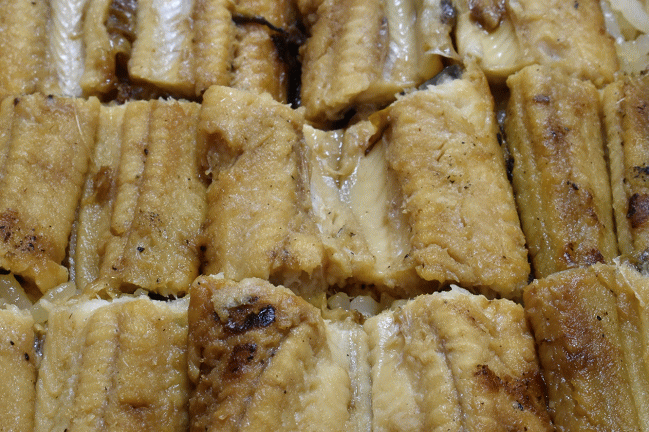 びっしりと敷き詰められた穴子には、思わず涎が出てしまいます。穴子は天然ものだそうです。歯ごたえのある肉厚な穴子の蒲焼は、まさに唯一無二の美味しさ、炭火で焼いた香ばしい味と香りが素晴らしいです。