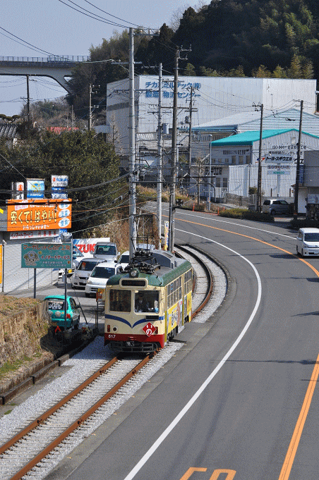 ⇒桟橋車庫前付近でとさでん交通を撮影