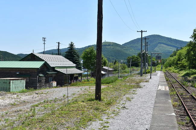 島式ホームの面影がありますが、1面1線の幾寅駅構内です。2016年8月以来、列車の発着はありません。(2023.6.26 10:15)