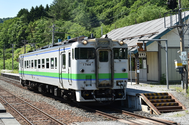 発車した列車を後追いで撮影。金山駅を発着する列車は、次の14:46発東鹿越行までありません。(2023.6.26 9:28)