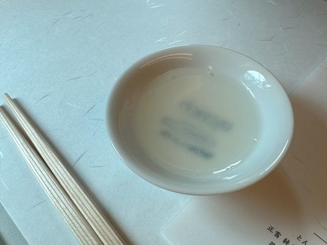 ひとりひとりに手渡されるメニュー。テーブルにはランチョンマット風の紙が敷いてあります。