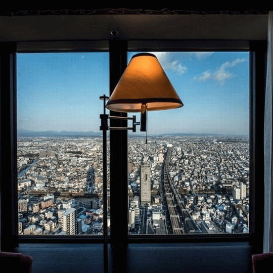 東海道新幹線や東海道本線の電車に揺られて西に下るとき、進行方向の右側、浜松駅のすぐ手前に高層ビルがニョキっと建っていて、とても目立ちます。このビルの最上部がオークラアクトシティホテル浜松になっており、浜松市から東海道一帯を見渡す事ができる、好展望台です。