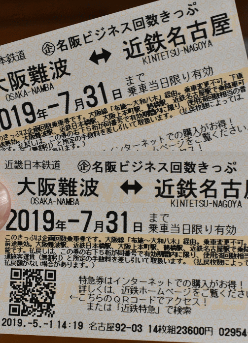 参考までに名古屋~大阪間の乗車券は「名阪ビジネス回数きっぷ」があり、14枚23600円で名古屋駅地下街の金券ショップでは1枚1850円にて販売されていました。同区間の特急券は前日までのチケットレスネット予約割引で1600円となり、計3450円とかつての「名阪まる得回数券」にかなり近いお値段で利用することができます。