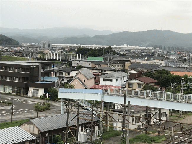それでは、パシフィックホテル白石からのトレインビューを。まず、このホテルの立地ですが、ご覧のように東北本線に隣接していますので、鉄道を見る事が出来る点では間違いありません。