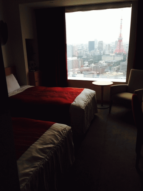 下記、パークホテル東京の入り口付近と、新幹線です。2枚目の写真は、お部屋の様子。ツインルームに宿泊しています。