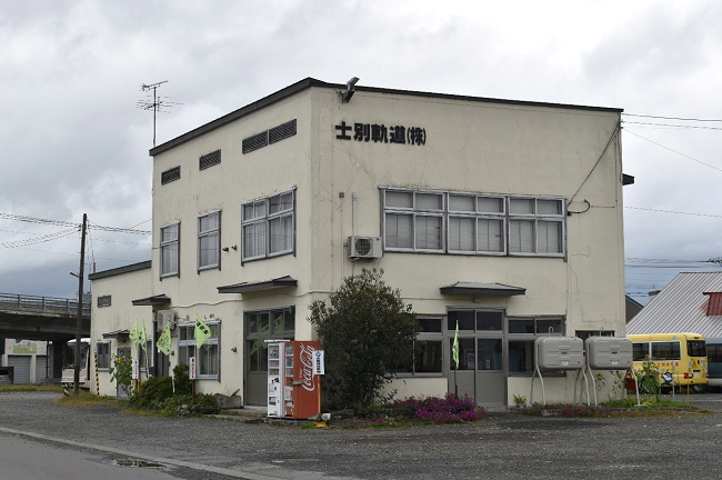 士別駅から徒歩約3分の所にある士別軌道の本社です。歴史を感じさせる建物には待合室と窓口があり、敷地内にバスの車庫もあります。