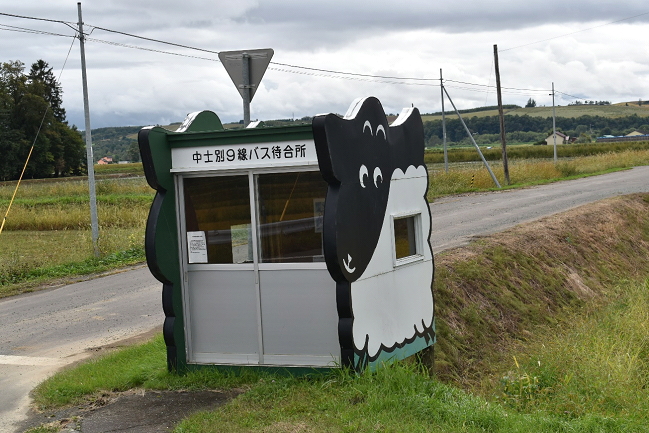 「羊のまち士別」にちなんで、羊のバス待合所がいくつかありました。この朝日線は士別軌道の鉄道跡と並走しているようですが、廃線が古く鉄道の面影は見つけることができません。