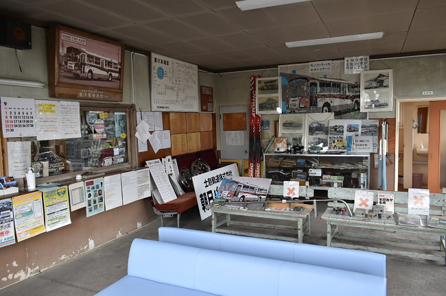 待合室ではグッズ類、中古部品などが販売されています。待合室中央に置いてある朝日バス待合所の看板は500円とのことです。ここで朝日までの往復乗車券を購入します。