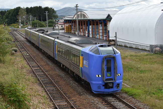 沿線は線路脇に草が生い茂っているところが多く、好撮影場所も不詳に付き、止むを得ず 剣淵で駅撮りをすることにしました。まずは快速「なよろ6号」旭川行を撮影、特急との 行き違いで数分停車します。(2024.9.15 14:05)