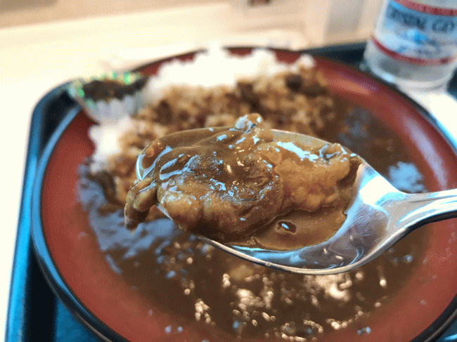 復路の食事は、まずは松阪牛カレーです。レトルトカレーですが、しまかぜのカフェの全メニューを制覇した感想からすると、このカレーがダントツで美味しかったです。