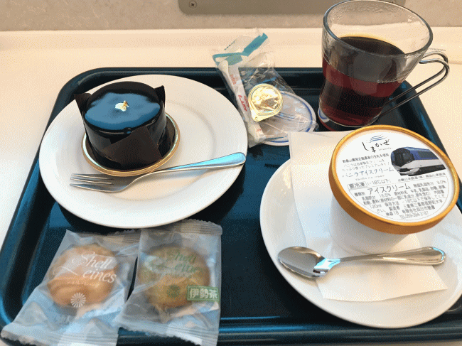 スイーツセットと、しまかぜアイスをオーダー