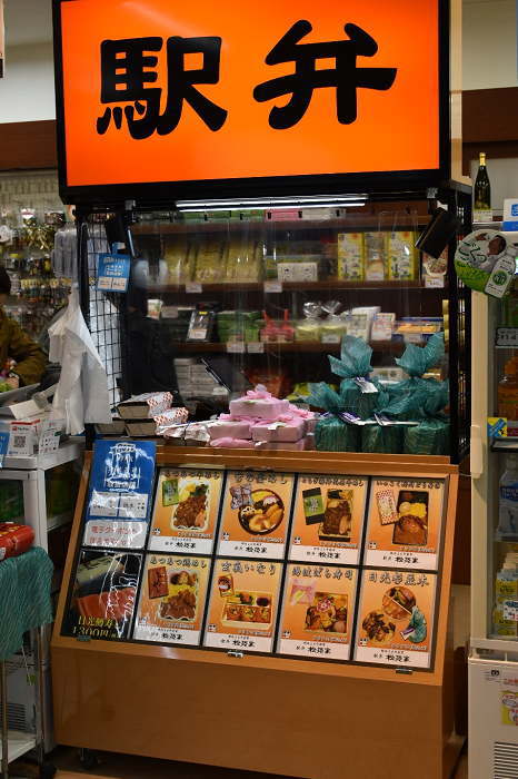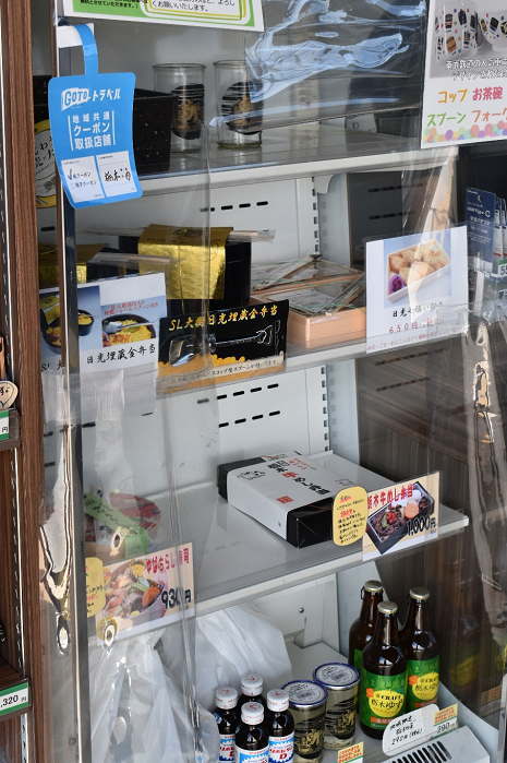 下今市駅ホーム売店の駅弁コーナーです。時間が早いのか数は控えめでした。 (2020.10.18 9:26)
