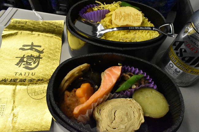夕食は宇都宮から東京まで乗車した普通列車グリーン車内で「SL大樹日光埋蔵金弁当」(日光鱒鮨本舗㈱・1350円)をいただきました。