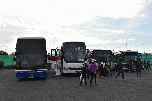 3社局4台のバスが展示されていました。他にグッズ販売コーナーがあり、保線用車両の乗車体験も実施されていました。