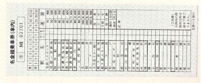 上記は、1990年、名古屋から金沢まで所要8時間、6200円と、一般道を走行する路線バスとして国内最長距離といわれた路線の車内券です。今となっては夢のような豪華なバス路線ですね!