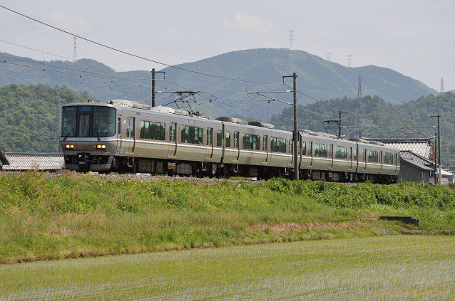 近江塩津行新快速列車。この辺りでは各駅停車ですが、駅での案内や表示は「新快速」です。(13:04)