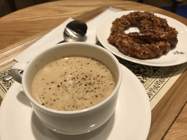 今回はティータイムでの利用、軽食にスープとドリンクをオーダー