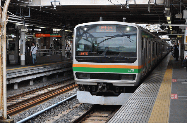 ところで、この間、緩行線の隣りの線路からは貨物列車が入換の上、発車していきました。貴重なEF65の牽引、首都圏の貨物列車についてはよくわかりませんが、隅田川10:03発蘇我11:53着の1091列車でしょうか。今日は「鉄運」がいいです。