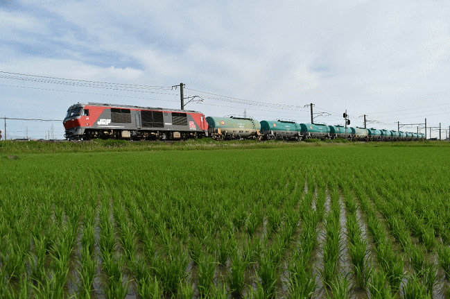 八田~永和で撮影した8079列車です。2018年3月のダイヤ改正後は単機牽引となったものの、現在ではDD51が牽引する唯一の石油輸送列車(空車)として貴重な存在です。 (2018.2.20 12:48)