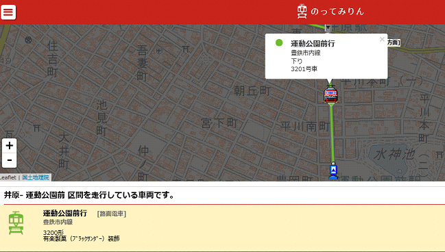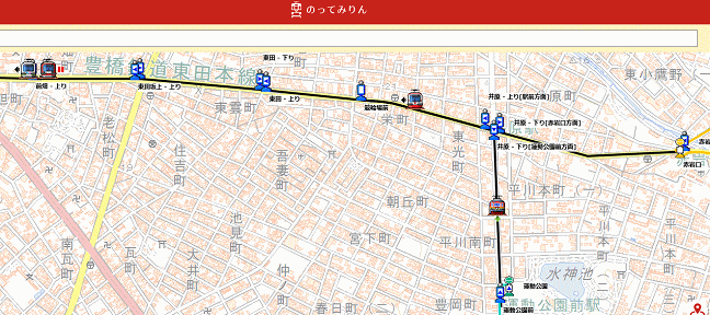 豊橋鉄道市内線の撮影には豊橋市が運営する車両の位置情報システム「のってみりん」の利用が便利です。市内線と一部のバス路線の車両の現在位置がリアルタイムで確認できます。