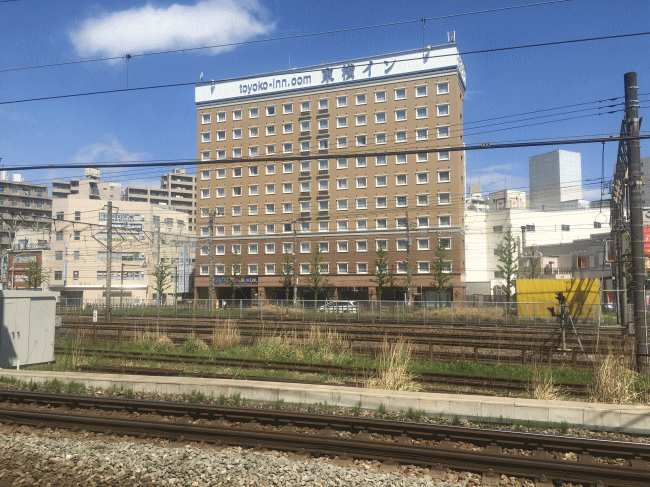 それに、東横インが線路に近すぎて、高速でやって来る貨物列車や特急列車などは、いきなり視界の左右に突如として現れるので、とても撮影が難しいです。というか、無理に近い。