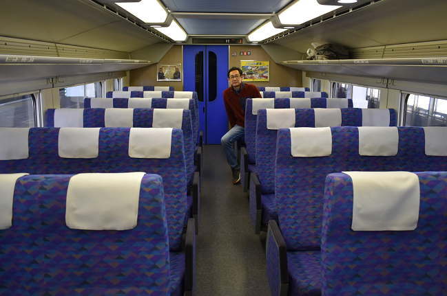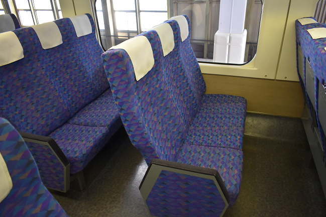 自由席は通路の両側とも3人掛の席で、定員乗車で3名座ると窮屈そうです。本日のように空いている場合は、リクライニングしないものの座り心地は悪くありませんでした。