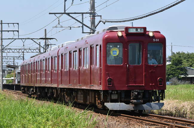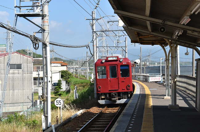 先ほど乗車したTQ5編成が大垣で折り返してくると予想していましたが、車両が交換され2019年9月に京急塗色となったD04編成がやってきました。もう少し早い時間帯の方がベストのようで、正面への光線が弱くなってきました。(2020.6.8 12:18)