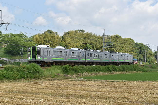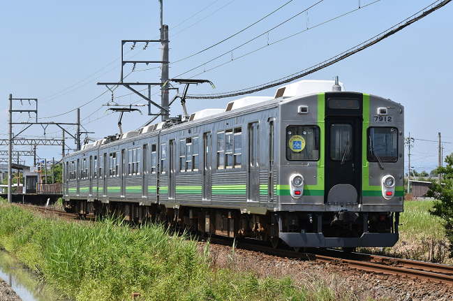 三度、緑歌舞伎塗色のTQ12編成を後追いで撮影します。養老鉄道の7700系は塗色が多様で、撮影していても飽きません。(2020.6.8 13:41)