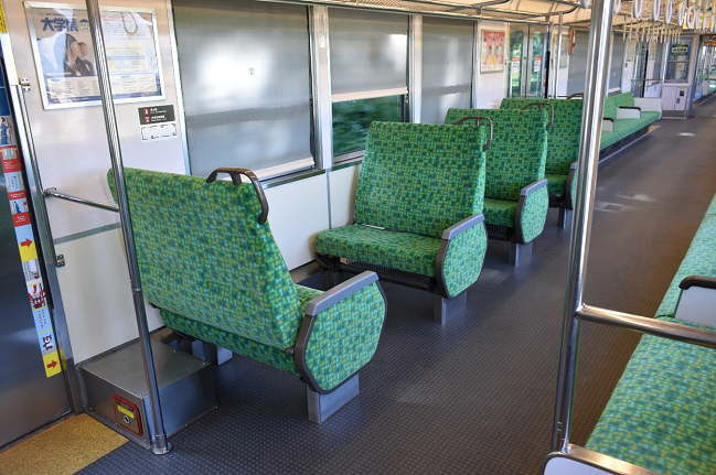 7700系3連の中間車には転換クロスシートが設置されています。養老駅から乗車した7812号の車内です。養老乗車時はガラガラだった車内も、駒野→美濃松山間では中学生が、下深谷からは高校生が乗車して賑わいました。