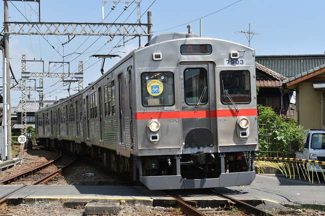 朝撮影したTQ14編成を再び撮影。美濃津屋駅を発車した桑名行です。本日の養老鉄道桑名~大垣間の運用車両は、7700系が幅を利かせていました。(2020.6.8 10:57)